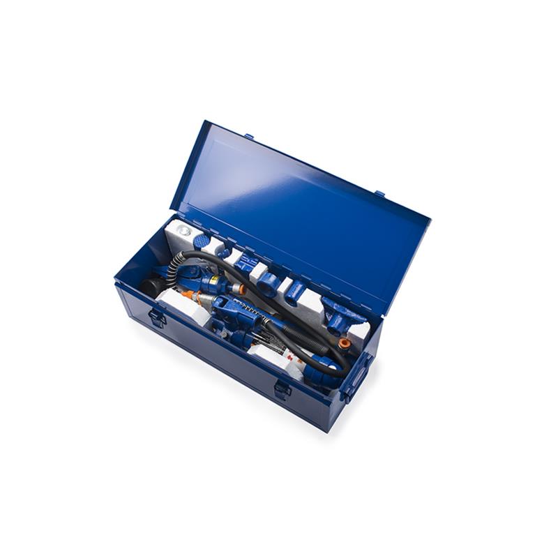 تنوع ابزار: شامل یک پمپ دستی هیدرولیک، شلنگ فشار قوی، جک استوانه‌ای (رام) و انواع سری‌ها و اتصالات تخصصی است.