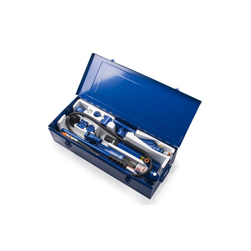 تنوع ابزار: شامل یک پمپ هیدرولیک قوی دستی، شلنگ فشار قوی، رام (جک استوانه‌ای) و مجموعه‌ای کامل از سری‌ها و اتصالات برای انتقال نیرو در زوایای مختلف.