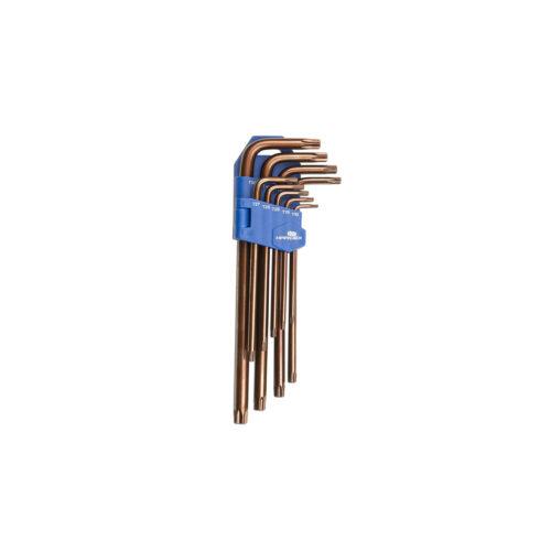 تعداد و نوع: یک ست ۹ عددی کامل شامل آچارهای ستاره‌ای (Torx) با نوک‌های ۶ پر برای انواع پیچ‌های امنیتی و استاندارد.